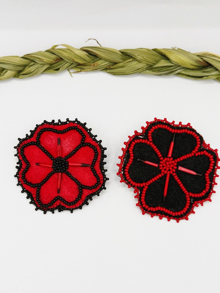 Learn from Métis beadwork artist, Maria Duarte, about the traditional practice of two-needle beading. Guided step-by-step, you’ll create your very own beaded poppy pin, a meaningful and wearable piece. This workshop is perfect for beginners or anyone looking to deepen their appreciation for beadwork. All materials will be provided, and you’ll leave with new skills, cultural insight, and a handmade poppy pin to proudly wear or gift.
